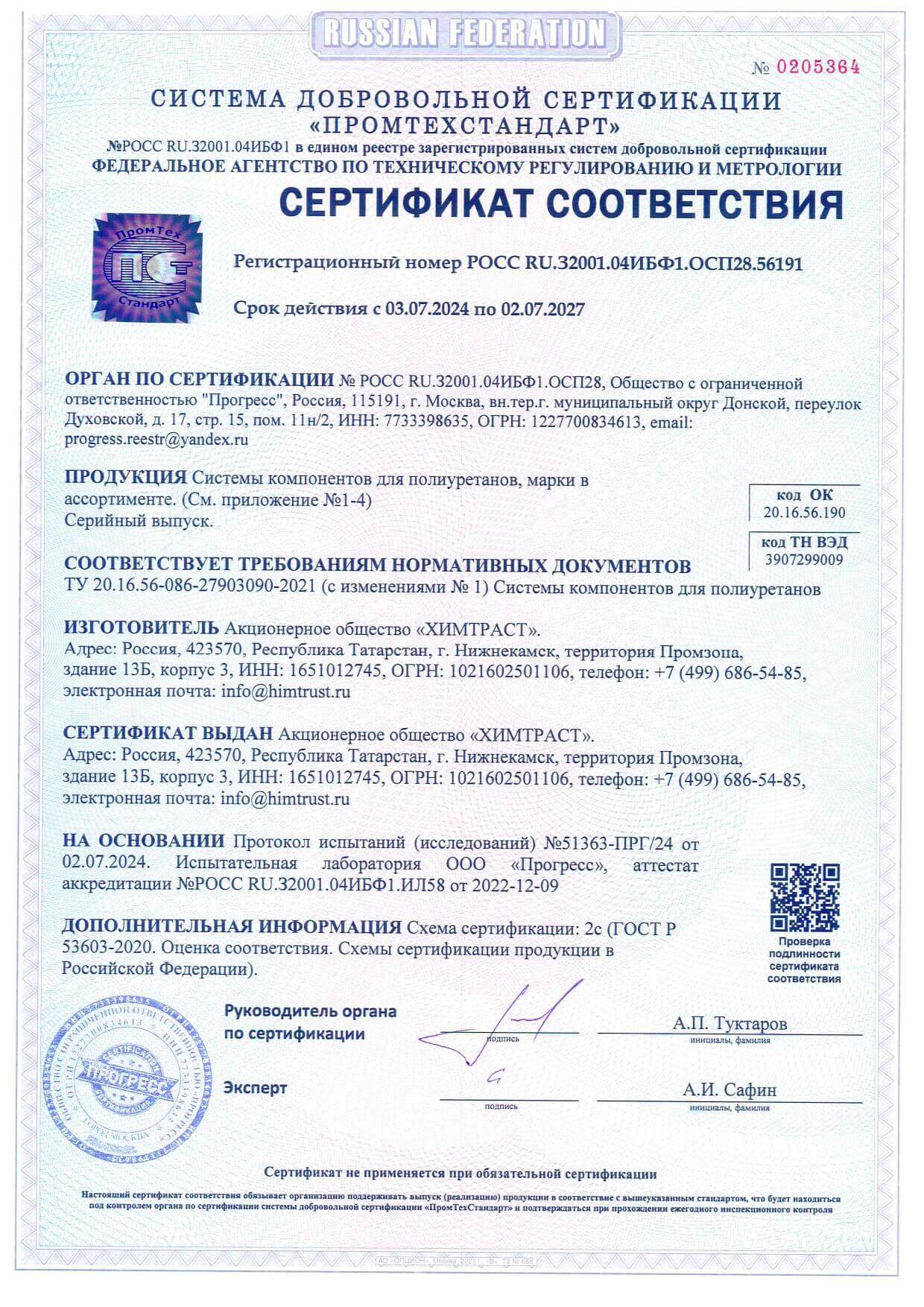 Сертификаты для заливочных ППУ